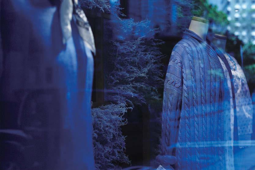 对45来说,制作新色调的牛仔服饰,就像新春团拜一样,是每年必做之事。灵感来初春天空放晴时的景象而设计出来的水浅葱(MIZUASAGI)系列。水浅葱即淡蓝色,是45R蓝染色盘上的新色系。可知道蓝染效果愈浅,染色及染料浓度配合是非常重要的,而且工序亦比普通蓝染复杂,需要洗水的次数亦比较多,故每一件水浅葱系列都是由45R工匠们的精致作品。工匠以浅蓝色调制出牛仔布、斜纹软呢、平针布和马皮磨沙革等布料,更巧妙地运用布料来制作出像嬉皮士般的标准5袋牛仔裤及休闲牛仔裤。休闲牛仔裤只要配上男性化的鞋履,便可穿出斯文优雅的感觉。
