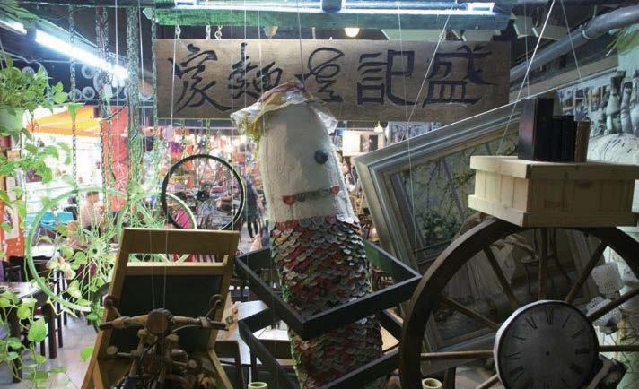 你没看错,是的,这里的装修真的很垃圾,而难忘位就在此。这里的摆设很另类,也很立杂。可以是车呔、画框、胶靴、纸张的艺术品,四个字来概括:循环再造。其实很多是老板B哥的手作,也有街坊和学生的制作,然后放置到这里。一件件“唔啦更”的民间艺术品,拼凑出这店的特色。在这里,有好奇心的你一定会头愕愕,四围看看有何新奇事物。原来垃圾都可以望一餐,所以食物反而是其次。我就是喜欢面档的随意,这个概念,换转是大财团或连锁店的话,又会沦为一件赚钱的事,一碗面卖你4、50蚊。而家族小生意如盛记,只求维持生计,合理的价钱,享受的还有人情味。