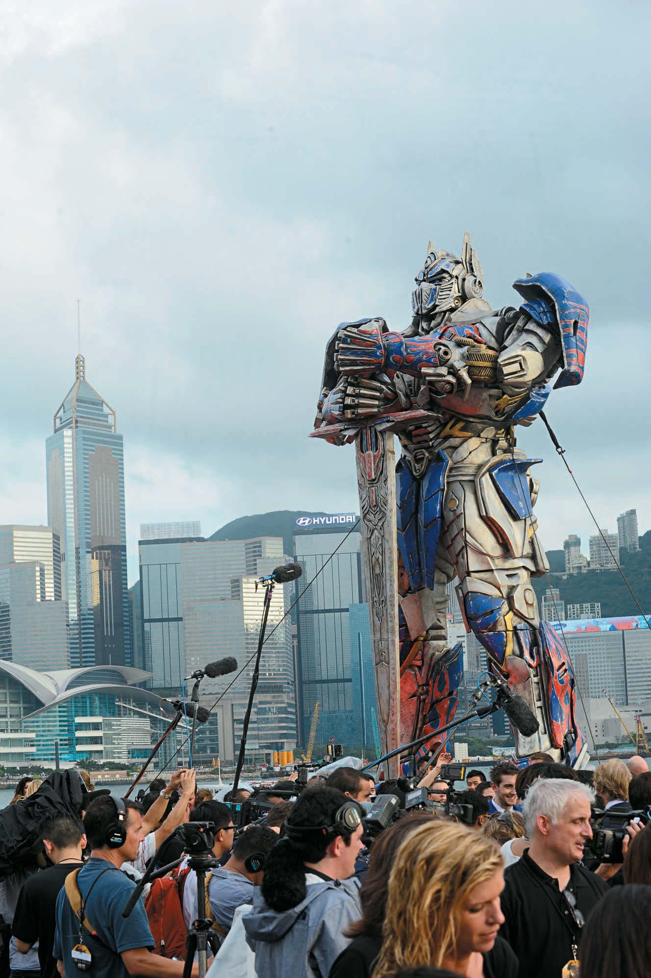 《变形金刚:歼灭世纪》中的香港被Michael Bay大炸特炸,但电影公司见维港咁靓,特意来港举行全球首映,是香港史上首次!好莱坞巨制当然有好莱坞巨星,上星期四在文化中心的首映红地毯上,真真正正是维港巨星荟,除了导演Michael Bay,还有男主角麦克华堡(Mark Wahlberg)、史丹尼杜兹(Stanley Tucci)、演麦克华堡一对仔女的积雷诺(Jack Reynor)及妮可拉彼兹(Nicola Peltz)、唱今集主题曲的乐队Imagine Dragons、还有李冰冰、韩庚等等。不过讲到抢镜,非屹立尖沙嘴海边的20呎高柯柏文像莫属。